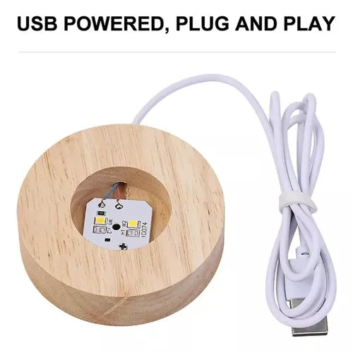 Todas nuestras esferas son de cristal muy resistente e incluyen una base de madera luminosa con conexión USB y un interruptor integrado y con grabado láser 3D.